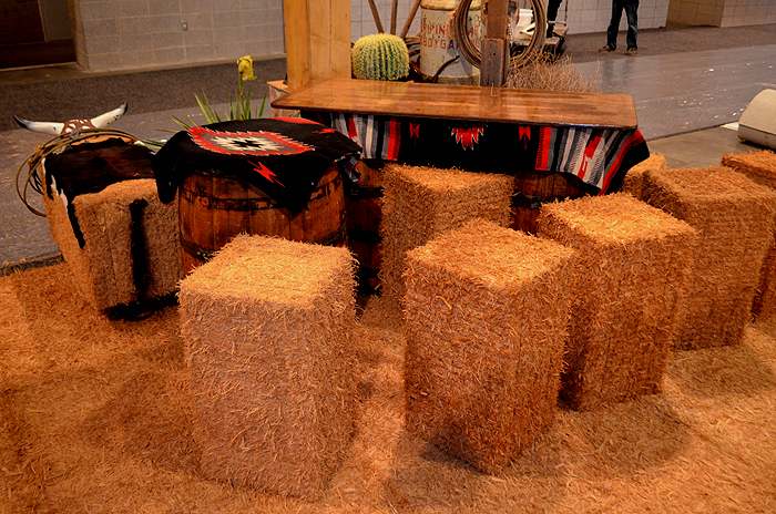 Display your company products on artificial hay bales. The perfect Texas display stand for trade shows